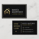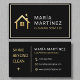 A sleek and modern black business card with a gold house logo and elegant typography. Perfect for cleaning services, housekeeping, janitorial businesses, and home care professionals who want a polished and professional look. The minimalist design with luxury gold accents makes it versatile and eye-catching while leaving a lasting impression on clients.