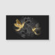Black and gold jewellery hummingbirds on grey background decorated with plants. Jewellery birds. Golden bird. Gold bird.