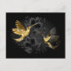 Black and gold jewellery hummingbirds on grey background decorated with plants. Jewellery birds. Golden bird. Gold bird.