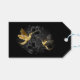 Black and gold jewellery hummingbirds on grey background decorated with plants. Jewellery birds. Golden bird. Gold bird.