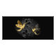 Black and gold jewellery hummingbirds on grey background decorated with plants. Jewellery birds. Golden bird. Gold bird.