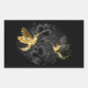 Black and gold jewellery hummingbirds on grey background decorated with plants. Jewellery birds. Golden bird. Gold bird.