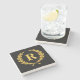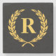 Black and Gold Laurel Wreath Monogram Stone Coaster