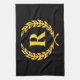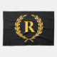 Black and Gold Laurel Wreath Monogram Tea Towel