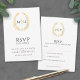 White and gold hand-drawn oval leaf wreath botanical art wedding RSVP. Simple leaf design around your own monogram initials. In simple gold with black text on white. Matching invitations and other matching items and colour options are available. © Original leaf drawing and design by Sarah Trett for www.mylittleedenweddings.com on Zazzle.