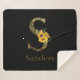 Black and Gold Letter S Sunflowers Sherpa Blanket