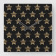 Black and Gold Look Stars Pattern Elegant Square Wall Clock
