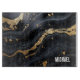A beautiful black marble, and gold veins, agate textured personalised glass cutting board.