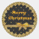 Modern Chic Classy black and gold polka dotted "Merry Christmas Sticker with pretty gold bow.