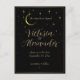 Featuring a gold graphic illustration of a crescent moon surrounded with celestial stars, this celestial theme save the date postcard is perfect for your modern wedding when the stars align. Customise the text on front and back with your own wedding and venue info. Add your own special photo.