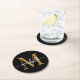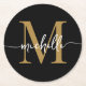 Black And Gold Monogram Name Elegant Script Round Paper Coaster