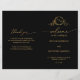 Welcome your guests with this elegant black and gold monogrammed wedding program with beautiful hand drawn monogram and modern and hand written calligraphy details in faux gold foil. Background in black. Ability to customise all areas to suit your needs. NOTE: this program arrives flat and require folding down the middle to assemble. The default value paper is recommended. For a clean fold we suggest scoring paper with inexpensive bone folder. The size refers to the program "before" it's folded, as it looks in the "front" preview image. Part of our "Black and Gold Monogram Wedding Collection" with a variety of coordinating products available. Visit the entire collection at: https://www.zazzle.com/collections/black_and_gold_monogram_wedding_collection-119092477004367833