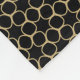 This fleece blanket features a gold ring pattern on a black background. The centre of the design offers a black circle and a diagonal black stripe with custom text for the names of the newlyweds and their wedding date. The blanket is an elegant keepsake gift.