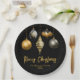 Black and Gold Ornaments Merry Christmas Paper Plate