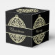 Black and gold intricate, ornate bauble pattern on Christmas favour boxes.