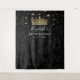 Looking for great ideas to welcome guests at a black and gold themed party? Create your own elegant DIY photo backdrops that will make your big day sparkle! The glamourous, original art by Raphaela Wilson showcases a vintage gold crown / princess tiara with glitter sparkle butterfly confetti over a rich black background with a subtle watercolor rose pattern for a luxurious look. Whether you're celebrating a black and gold quinceanera (XV / quince), goth sweet 16 birthday party, royal rose wedding with a Gatsby / art deco flare, a roaring twenties 50th birthday, anniversary, bridal shower or other special occasion, these fun DIY template backdrop tapestries can match the dress and add that glamourous touch you're searching for. This classy, easy template fabric prop can be a popular decor choice for a cool masquerade party as well. Prefer another pretty font selection? By customising this classy design further, it is simple to switch out the classic calligraphy script and modern fonts to a stylish typography that best suits your fancy. Even change the gold artwork to silver, and pick any colour you wish for the svg graphics (available for the queen crown, confetti butterflies and dark roses). Category: custom hanging wall backdrops for parties; black quinceanera backdrops; and personalised gothic wedding backdrop tapestry. Black and gold party decorations theme palette: rich black, dark grey, champagne yellow gold, and white.