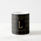 Elegant black and gold Moroccan trellis patterned coffee mug that you can customise with your monogram .