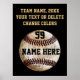 Black and Gold Personalised Baseball Poster or CHANGE Black and Gold to Your Team or Baseball Room Decor COLORS. Type in the YEAR, Team and or Player's NAME, NUMBER or your Baseball Championship gifts message or Delete. CALL Zazzle Designers Rod or Linda to assist you to make your own baseball poster or we can make all the baseball poster changes for you. Nice customisable baseball party ideas and gifts for baseball seniors and the team.