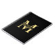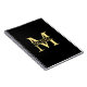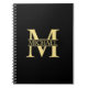 featuring personalised monogram in gold classic serif font style with box of name in the middle of monogram on black background.
