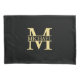 featuring personalised gold monogram in classic serif font style with box of name in the middle of monogram on black background.