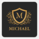Black and Gold Personalised Stylish Monogram Name Square Sticker