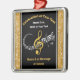 Black and Gold Personalized Music Note Ornaments for her. Pretty Faux Gold Glitter Borders the large Treble Clef over the Swirling Music Notes. Unique Glitter Music Note Ornaments design. CALL Designer Linda: 239-949-9090 EST for Design, Color, Occasion and Product CHANGES. You, or Designer Linda can CHANGE the Black Background and Gold Text. Call Designer Linda if you would like the gold colored treble clef and glitter designs and the musical notes ornaments colors changes.