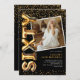 Modern 60th birthday invitation featuring a stylish black background, a photo template for you to replace with your own, a scattering of gold glitter confetti, gold hellium balloons that spell "sixty", and a elegant party text template that is easy to personalise.