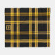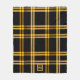 This plaid tartan blanket features a bold and classic black and gold design, creating a warm and stylish look. The intersecting lines form a grid-like tartan pattern with a rich texture that adds sophistication. A customisable monogram box is positioned at the bottom, allowing the initials (currently “MW”) to be replaced with your own, making it a thoughtful gift or a personalised home accessory.