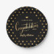 Black and Gold Polka Dot Congrats Grad Graduation Paper Plate