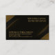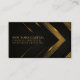 Modern professional business card featuring geometric black and gold design on both sides with classic serif typography. Fill in your company name, business service, address, name, title, phone, email. This card works for any business or occupation, and you can edit it to suit your needs. Several paper types available.