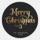 Black and Gold Retro Merry Christmas Script Custom Classic Round Sticker