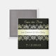 Elegant save the date magnet in black, with pretty gold damask design. Customise with your information as a lovely way to announce your upcoming marriage.