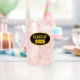 Trendy can glass for the school grad that features school colours of black and gold, with class year printed in bold, gold colour lettering on a black oval background with gold colour border. Great for graduation and class reunion parties. Edit class year with your own as desired.