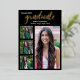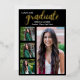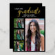 Invite your family and friends to your daughter's graduation with this beautiful invitation for modern graduation with beautiful gold-embossed beautiful typography, The Invitation Model has 4 customizable photos and Student's Name and School.In the back you have a Black background and the phrase "LET'S CELEBRATE" with modern white typography and data your party.