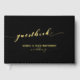 An elegant and sophisticated black and gold wedding guest book featuring gold foil swash calligraphy with your names in a modern san serif font on the front, spine and back covers.