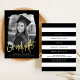 Trendy graduation party invitations featuring the graduate's photo inside of a black textured mask frame with "Graduate" in a handwritten gold foil script. Personalize the front of the photo graduation party invites by adding the graduate's name, school name, and graduation year. The invite reverses to display your party details with a black and white striped design.