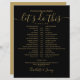 This stylish black and gold wedding schedule-timeline can be personalised with your wedding details in chic lettering. Designed by Thisisnotme©