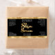 This elegant product label for skin serum bottles features a black background with a faux gold foil border. This label contains space for your product name, business name, product weight, ingredients, instructions, social media, and business address. This label measures 3.75 inches by 2 inches (95 mm by 51 mm) and is suitable for bottles with a diameter of 1.2 inches (31 mm) or more such as 2 to 4 oz (60 to 120 ml) bullet, cylinder, and boston round bottles. It can also be used for cosmetic jars and other types of cosmetics packaging.