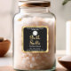a luxury label for bath salts with a black background and gold border and space for your logo.