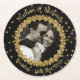 Elegant black and gold party coasters to personalise with your own photograph and text, perfect to celebrate special occasions like Weddings and Engagements. An ornate gold coloured frame surrounds your photograph set off against a black background with gold coloured flecks. Looks stunning with black and white photographs.