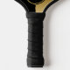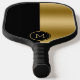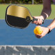 Black and gold split-screen geometric design pickleball paddle