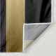 Modern black and gold geometric stripes on a white background and black graduate cap