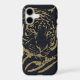 This striking design features a detailed gold glitter-style tiger illustration on a deep black background, creating a bold and luxurious visual statement. The regal and fierce expression of the tiger adds power and elegance to the design, making it perfect for those who love strong animal symbolism, high-contrast art, or glamorous style elements.