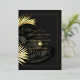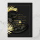Black and gold tropical leaves bachelorette party invitation. Please note that only the text and the frame are actual foil and not the leaves.