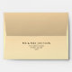Luxury, elegant, vintage black and gold 5x7 envelope for wedding invitations with return address and unique floral swirls inside.