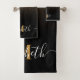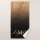 Black and Golden Glitter Monogram Bath Towel Set