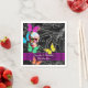 Pretty modern fantasy gothic sugar skull and black vintage dark baroque damask pattern and purple ribbon with colourful butterflies easily personalise the bride and grooms names or monograms to the templates to create a unique custom napkin for your special goth or day of the dead occasions and celebrations. Visit the PERSONALIZED_ WEDDINGS STORE for matching coordinated wedding suite sets.