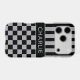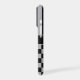 Customize this iPhone 17 pro case with black and gray stripes on the top half and black and gray checkered pattern on the bottom half with your name in a modern CAP font in the middle in gray on black. It's preppy, trendy and bold - definitely cool!