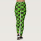 Personalise unique apparel costume for her. Spooky Halloween design with black cat heads with bright yellow eyes on green. Custom fun Halloween costume party leggings with many different designs and colours.