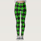 Black and Green Harlequin Diamond Checked Pattern Leggings